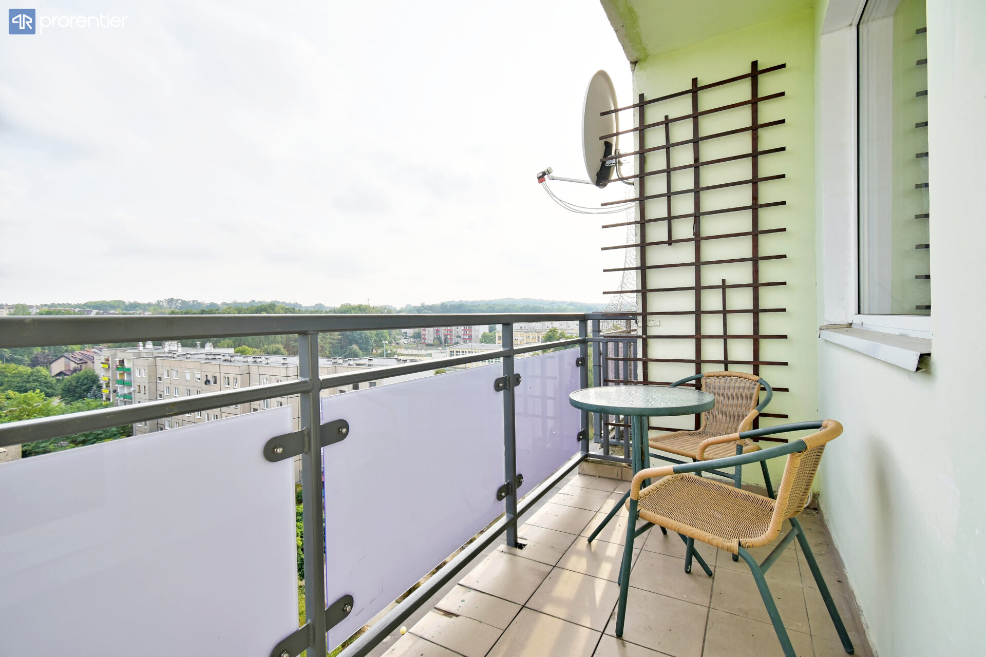 To mieszkanie ma powierzchnię użytkową około 48,30 m2 jest położone na 8 piętrze budynku z windą, z którego rozpościera się piękny widok na okoliczne lasy. Budynek jest zarządzany przez Spółdzielnię Mieszkaniową Kisielin. Okna w lokalu mają ekspozycję południową. Kuchnia jest oddzielnym pomieszczeniem otwartym na przedpokój. Do dyspozycji użytkowników jest również duży balkon w typie loggii oraz duża i jasna komórka lokatorska z oknem. W skład mieszkania wchodzą: